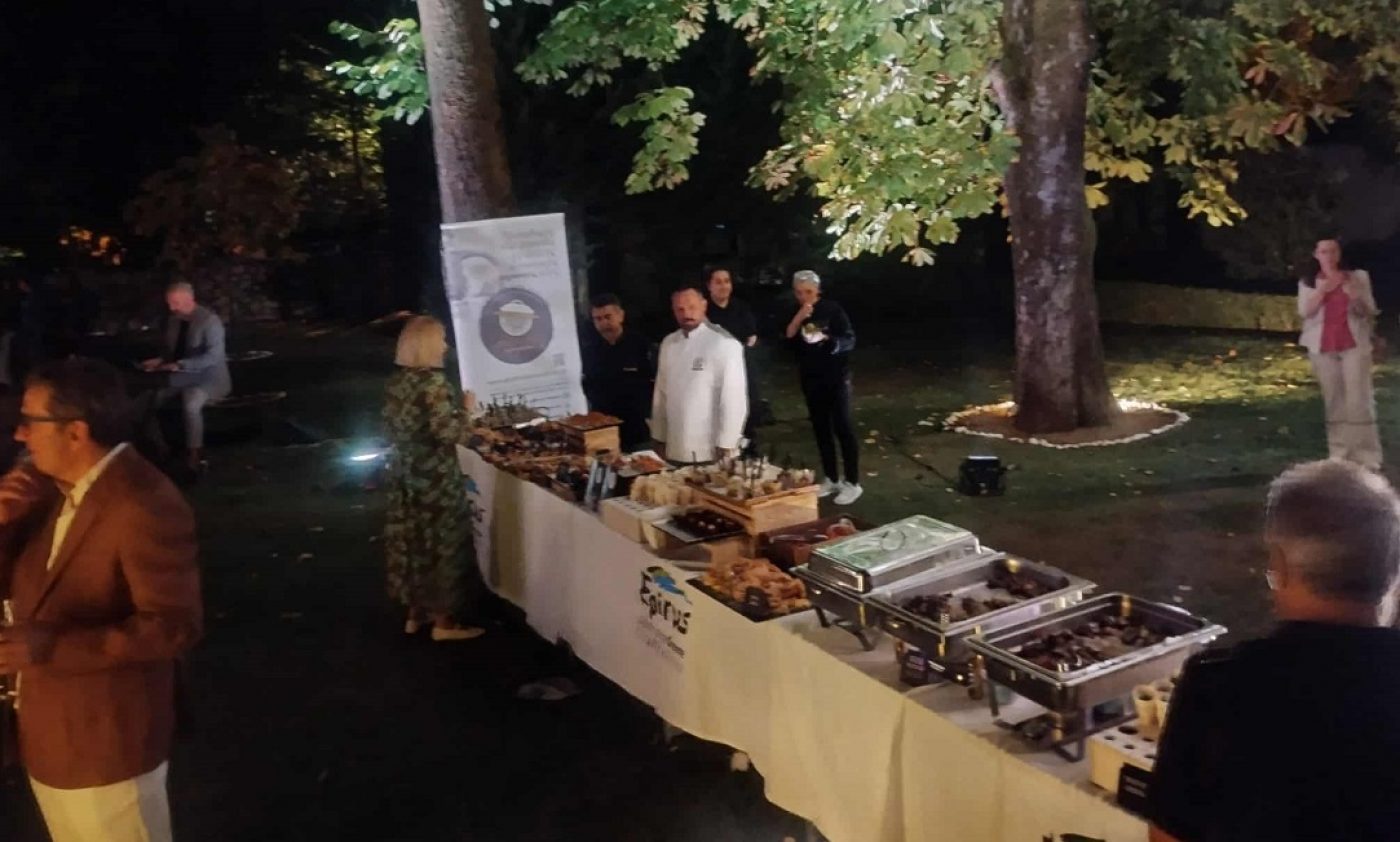 Με τη συμβολή της Περιφέρειας Ηπείρου, οι συνδαιτήμονες γεύτηκαν εδέσματα της «Ηπειρώτικης Γαστρονομίας», του εγχειρήματος που «τρέχουν» από κοινού η Περιφέρεια και το Εργαστήριο Χημείας Τροφίμων του Πανεπιστημίου Ιωαννίνων με εταίρους τον Δήμο Ιωαννιτών, το Δημόσιο Σ.Α.Ε.Κ. Ιωαννίνων, την Ένωση Γαστρονομίας Ηπείρου και το Σωματείο Εστιατορίων «Παμβώτις». Ο πλούσιος μπουφές, τον οποίο επιμελήθηκε ο σεφ Ανδρέας Γεωργούλης, περιελάμβανε γευστικές απολαύσεις, με βασικά συστατικά το Κασκαβάλ Πίνδου, το Ορεινό Ηπείρου, την καπνιστή πέστροφα και την πατάτα Χρυσοβίτσας, τα οποία συνόδευαν λευκό, ροζέ και κόκκινο κρασί, προσφορά της Zoinos Winery.